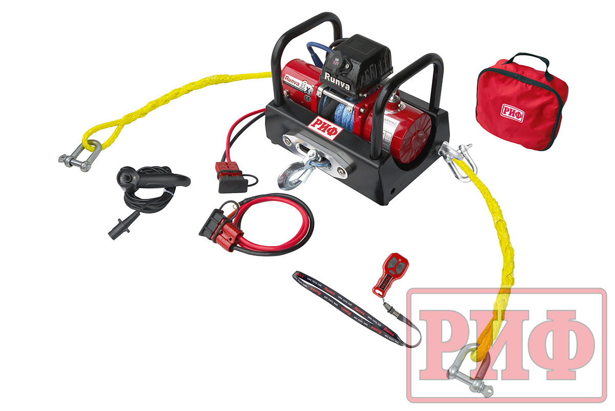 - Лебёдка электрическая 12V Runva 9500 lbs 4350 кг короткий барабан (синтетический трос) - 1