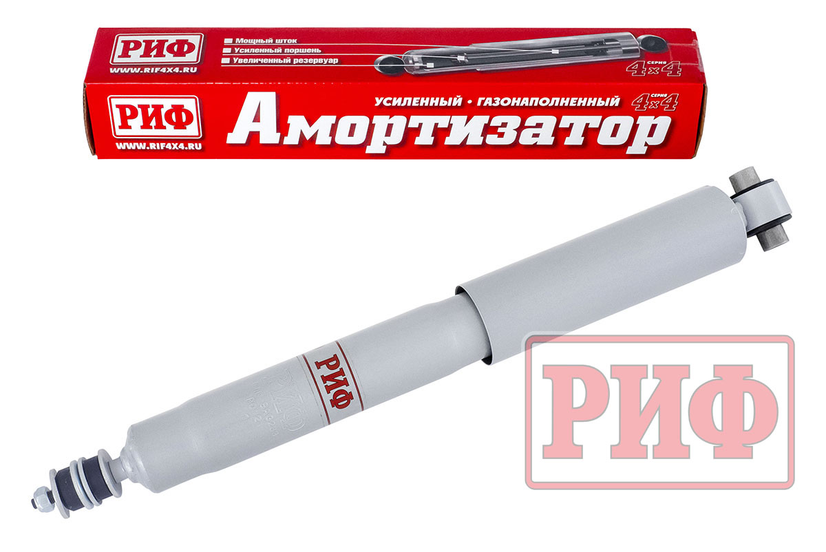 Газ, находящийся под давлением в компенсационной камере наружной трубы, позволяет повысить устойчивость амортизатора к высоким нагрузкам. Масло под давлением газа менее подвержено эффекту кавитации, а значит и меньше вспенивается, в отличие от обычного гидравлического амортизатора. Также, благодаря увеличенному масляному резервуару с большим количеством масла, усиленному штоку и поршню, амортизаторы "РИФ" обладают длительным рабочим ресурсом и обеспечивают великолепную стабильность рабочих характеристик при длительной езде по дорогам общего пользования, отличную курсовую устойчивость, хорошую артикуляцию подвески и приятную плавность хода на бездорожье.