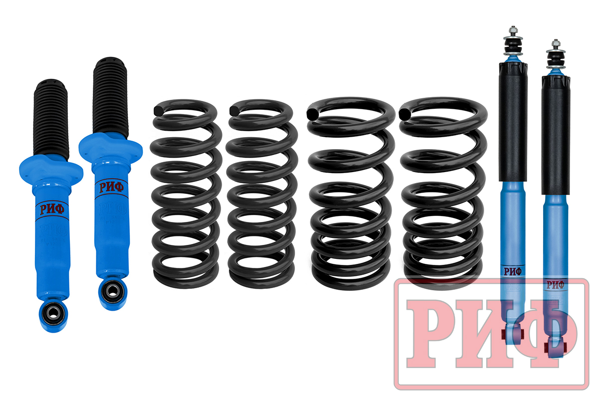 Все компоненты лифт-комплектов РИФ разработаны специально для эксплуатации внедорожника в тяжелых условиях на различных дорожных покрытиях. Амортизаторы с технологией R-AIR и пружины РИФ не только компенсируют вес установленного на внедорожнике дополнительного оборудования (бамперов, порогов, дополнительных топливных баков, лебедок и прочего), но также существенно повышают грузоподъемность автомобиля.