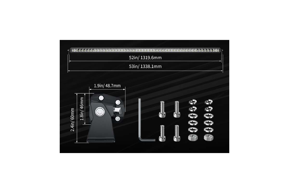 Данная LED фара AURORA так же снабжена крепежом из прочных материалов. Сама светодиодная балка, штекер и электрические провода выполнены с учетом защиты соединений от попадания пыли и влаги по стандарту IP69.