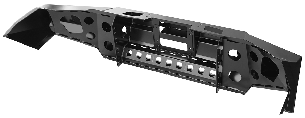 Бампер оснащен мощными упорами под реечный домкрат и буксирными проушинами для работы с рывковой или буксировочной стропой. Тщательно продуманная конструкция внутренних усилителей обеспечивают максимальную надежность бампера, стойкость к высоким нагрузкам и сильным ударам.
