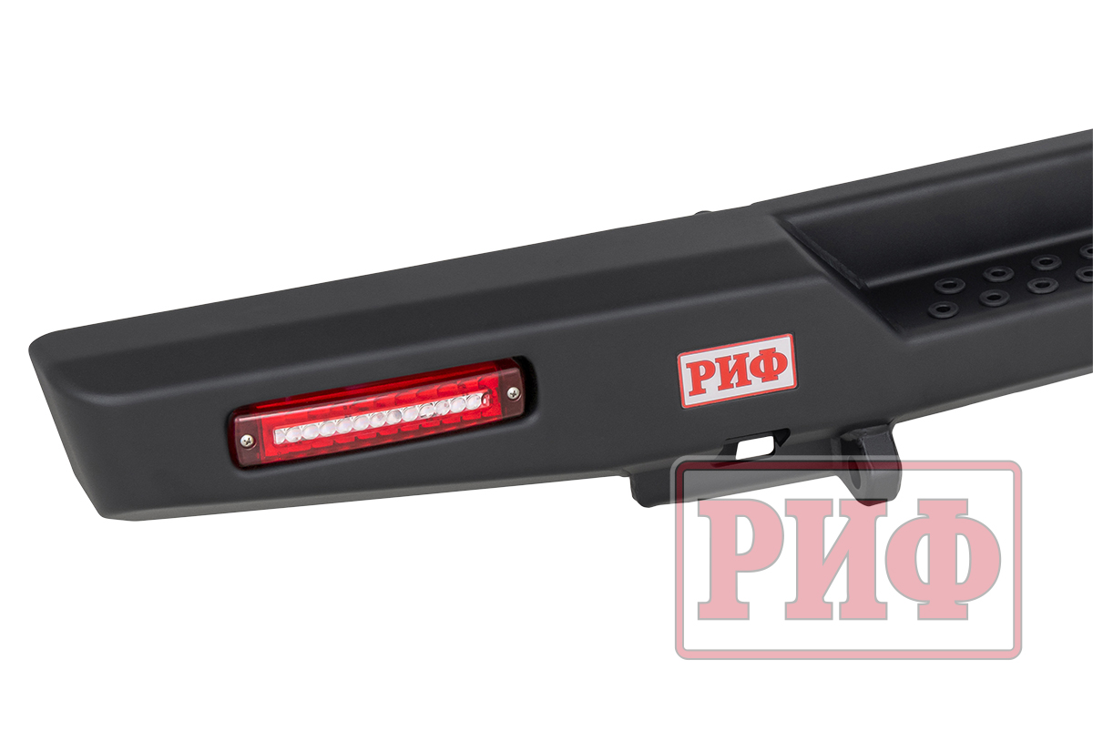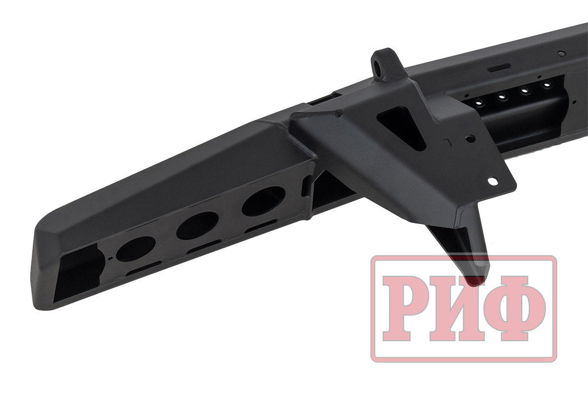 Задний силовой бампер РИФ надежно защитит кузов автомобиля на бездорожье или в городе в случае непредвиденных инцидентов. Бампер оборудован упорами под хай джек и буксирными проушинами для работы с рывковой или буксировочной стропой.