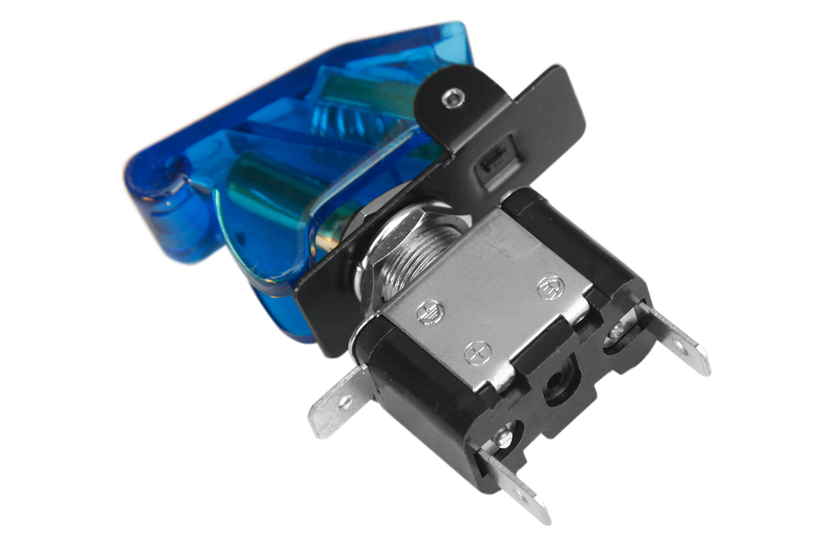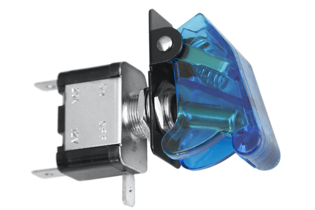 Тумблер имеет функцию подсветки. Для предотвращения произвольного переключения тумблера применяются защитные крышки, которые изготавливаются в различной цветовой гамме. Цвета крышки – синий