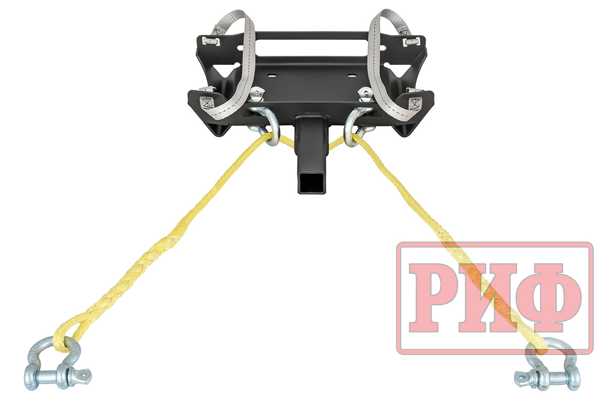 Данная прлощадка является универсальной: вы можете закрепить лебедку на машине двумя способами - в квадрат фаркопа или специальным тросом к буксировочным проушинам (съемная площадка оснащена синтетическим тросом и четырьмя шаклами, что позволяет использовать лебёдку под углом равномерно распределяя нагрузку на буксирные проушины. При эксплуатации обязательно использование синтетического троса из комплекта).