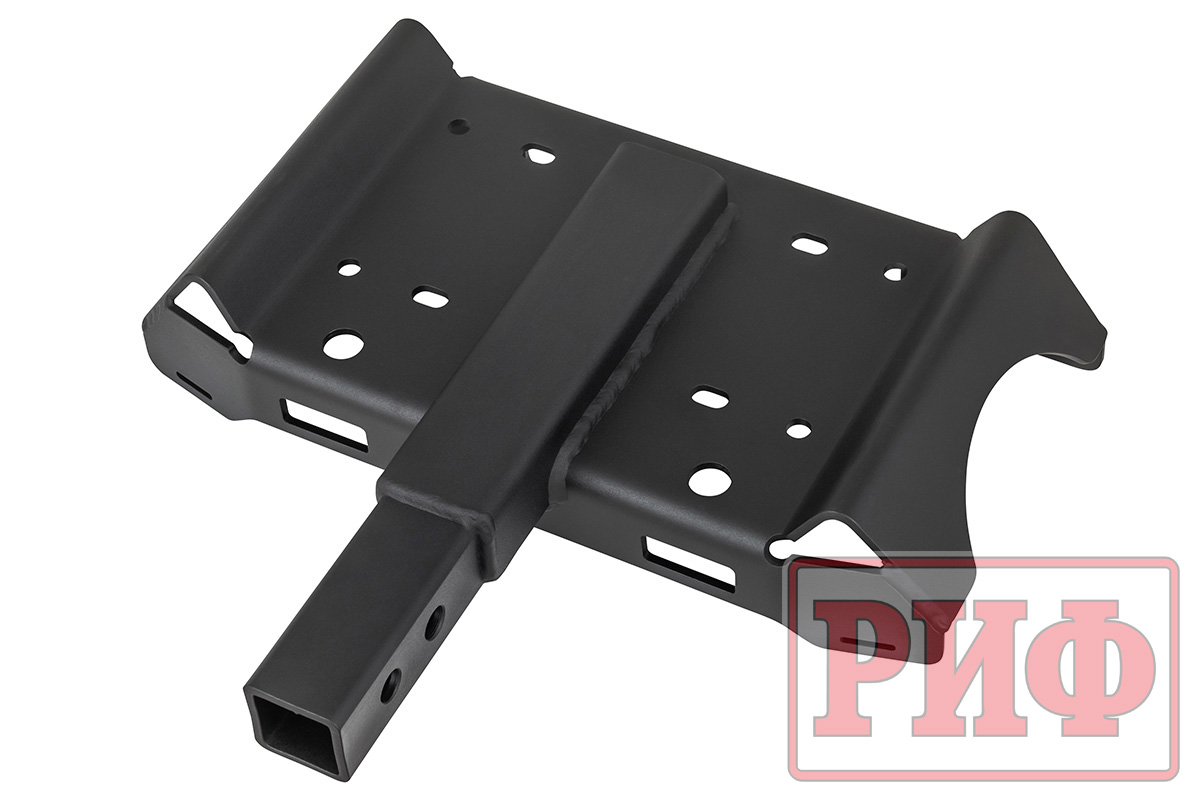 Конструкция площадки расчитана на установку как лебедок с обычным барабаном, так и с коротким (при установке переходной пластины под клюз/губы RIF000-30015) - монтажный размер - 254х114,3 мм и 151/166x114.3 мм соответственно. Предназначена для лебедок с тяговым усилием 5000 - 9500 lbs.
